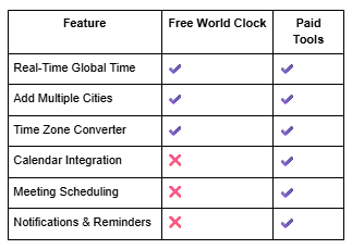 If you only need to track time across countries, a free tool like FreeWWW’s World Clock is more than enough. It’s fast, accurate, and accessible no subscriptions or logins required.